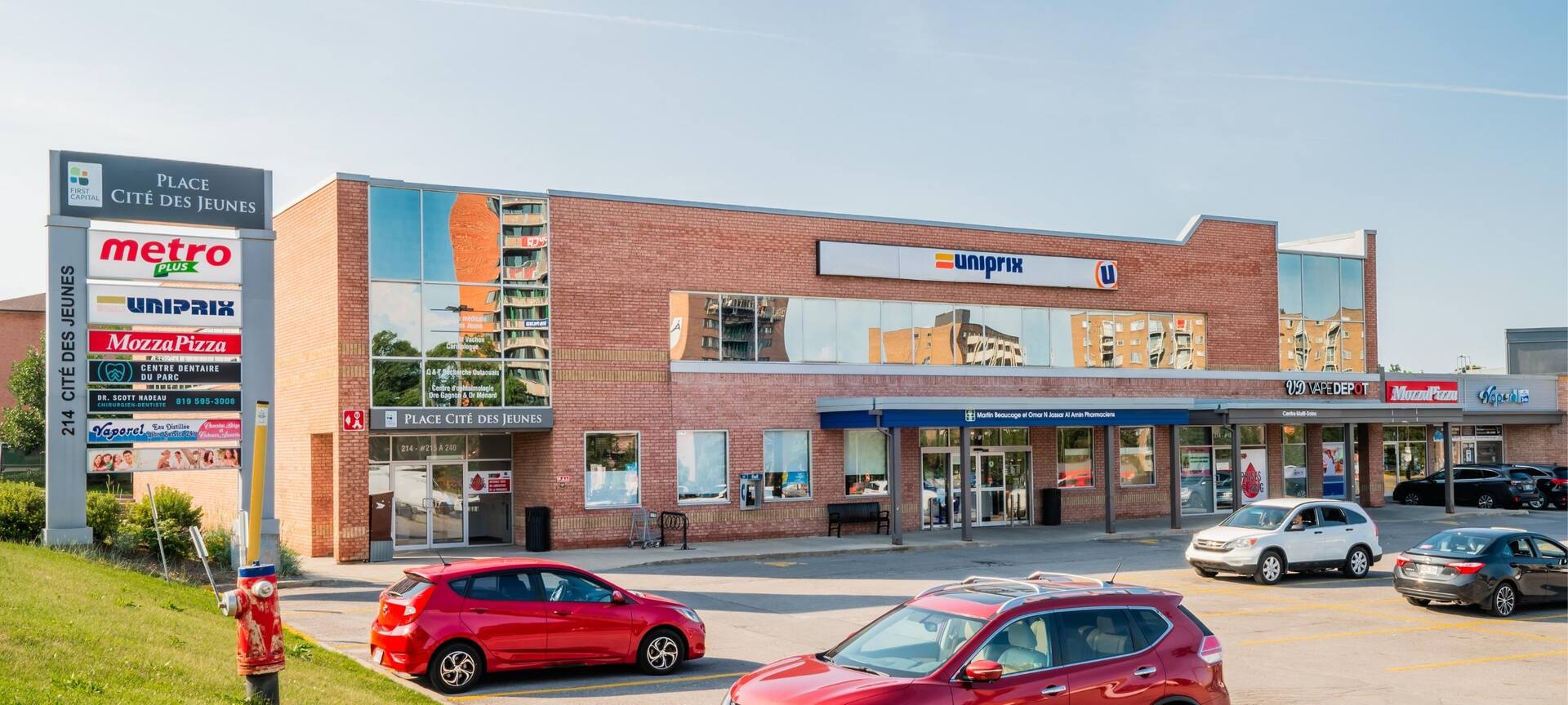 Place Cité des Jeunes in Quebec’s fourth-largest city is well-located near Cegep Heritage College and Hospital de Hull, offering various amenities. Anchored by Metro, an expanded Uniprix Pharmacy, Tim Hortons, and a medical centre, it serves as a popular shopping hub for local residents.